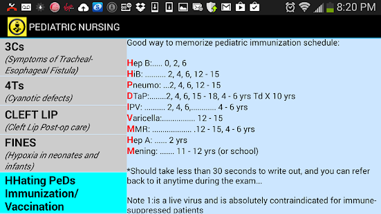 Does anyone have mnemonics to share for the pediatric vaccinations or any ob they would like to share. Just go back to your childs doctor for the next shot. In preparation for the nclex exam you will want to know the reco.